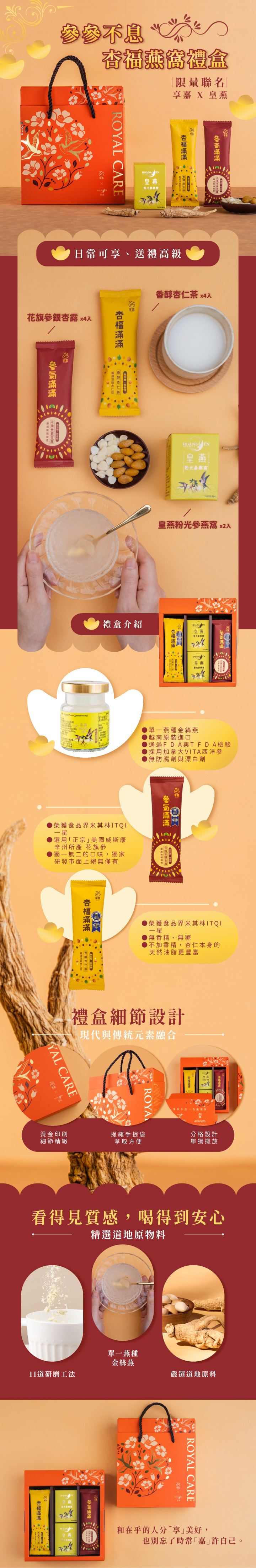 從香醇杏仁茶的溫和順口、花旗參銀杏露的清爽回甘,到粉光參燕窩的小瓶即飲,每一款都不為繁複,只為讓你在忙碌日常中,輕鬆享受一份安心、純粹的滋養時刻。