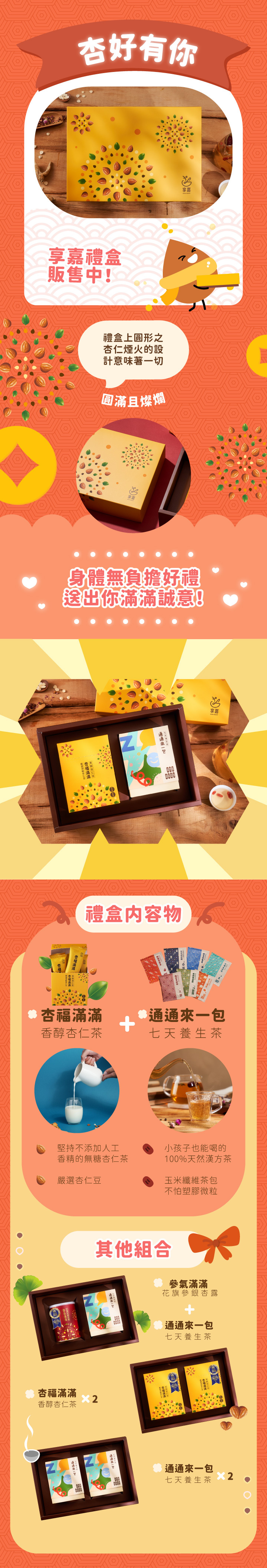 🔹 年節禮盒、企業送禮首選! 🎁✨ 享嘉香醇杏仁茶 + 七天漢方茶,養生茶飲新選擇 🍵 溫潤香醇 X 草本風味,靈活搭配,送禮心意 由你決定! 💝 🌿 質感禮盒設計,送禮自用皆宜,滿足不同品味,讓心意更到位!