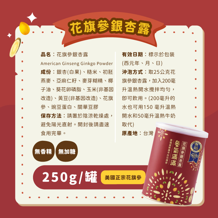 ● 正宗美國進口——只有來自美國的參才能稱為「花旗參」,其土壤礦物質豐富,品質優良。